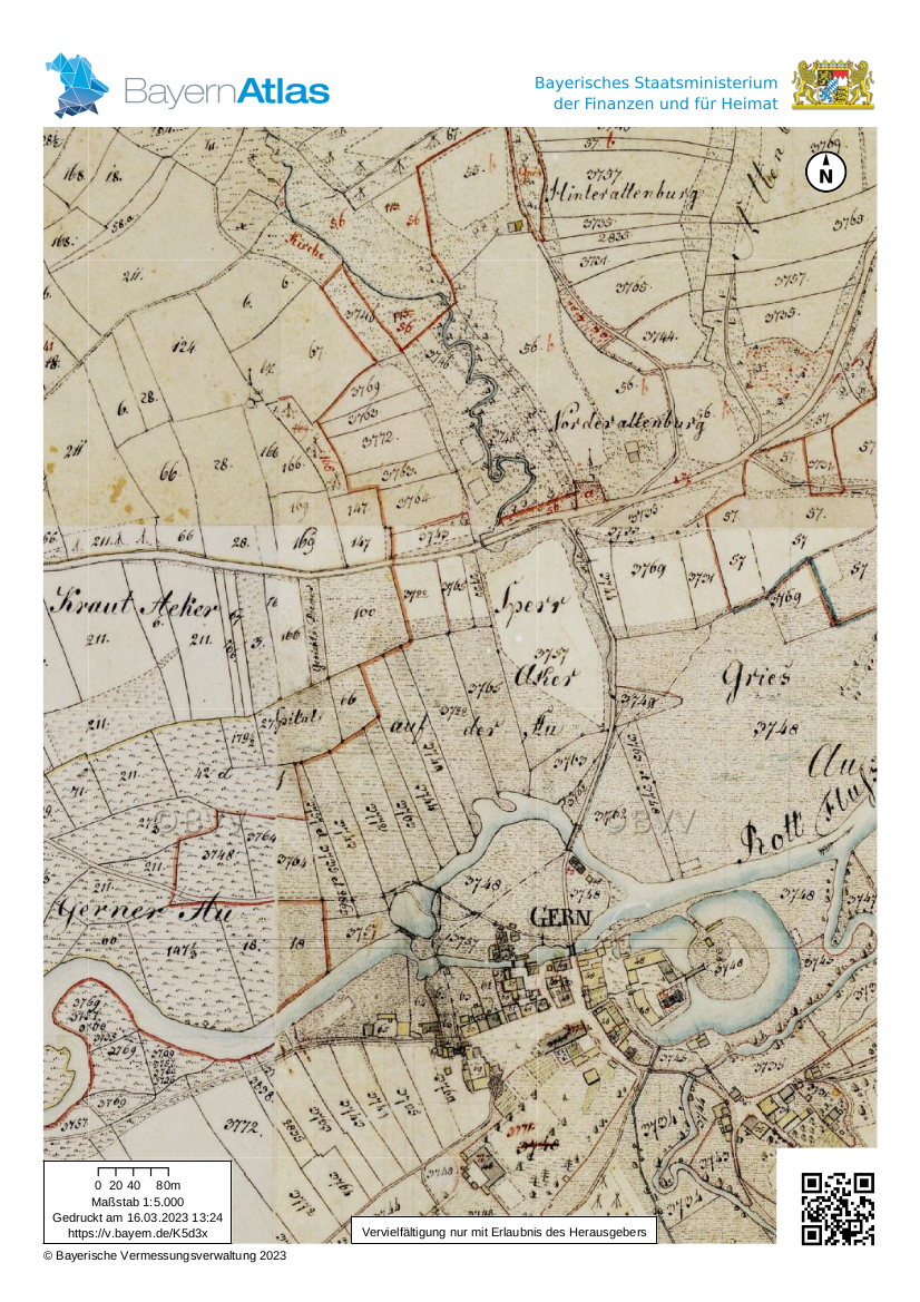 Das von der Hofmarkherrschaft der Closen geformte Einzugsgebiet von Gern reichte vom Ortsteil Rußhäusl auf der rechten Seite der Rott bis Altenburg mit dem heutigen Bürgerwald auf der linken Flussseite. Altenburg war ehemals ein eigenes Ritterlehen des Hochstifts Salzburg mit einer nicht mehr lokalisierbaren Burg.