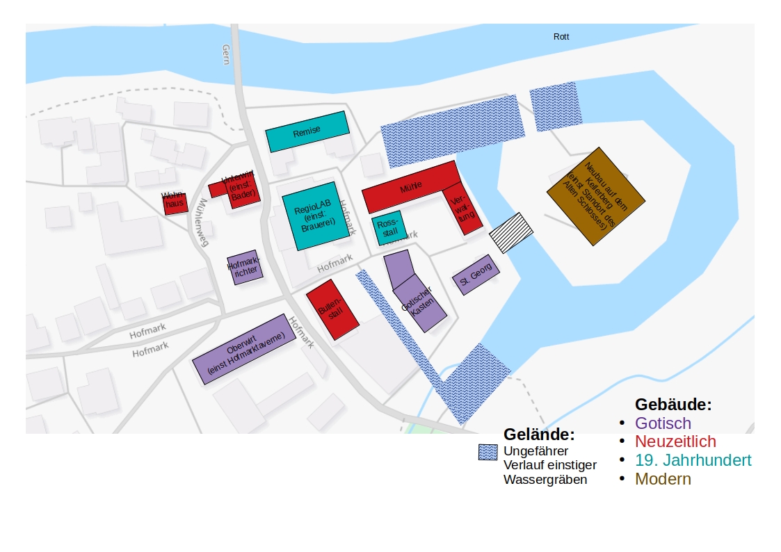 Dennoch kann zur groben Orientierung im Raum der Hofmark Gern eine stark abstrahierende Einordnung der Gebäude vorgenommen werden.