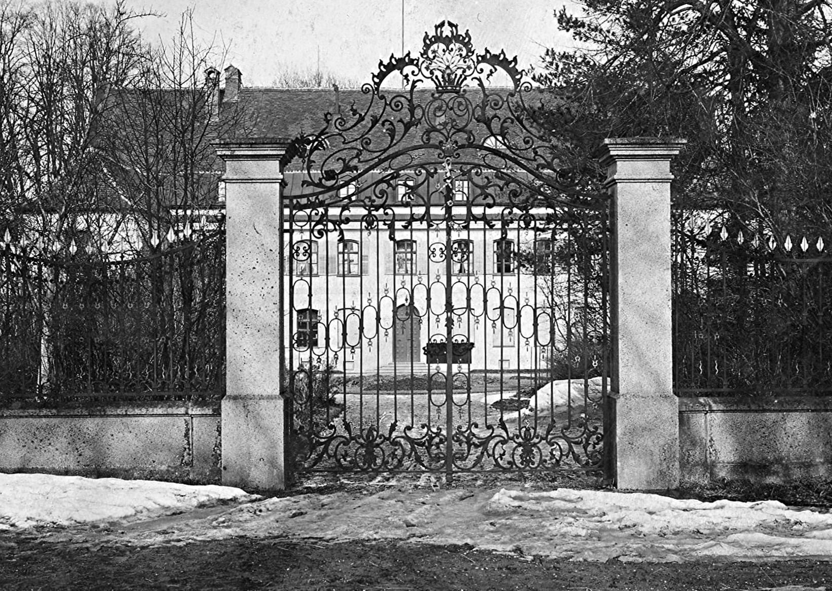 Historische Aufnahme, schmiedeisernes Tor des Neuen Schlosses, Gern.