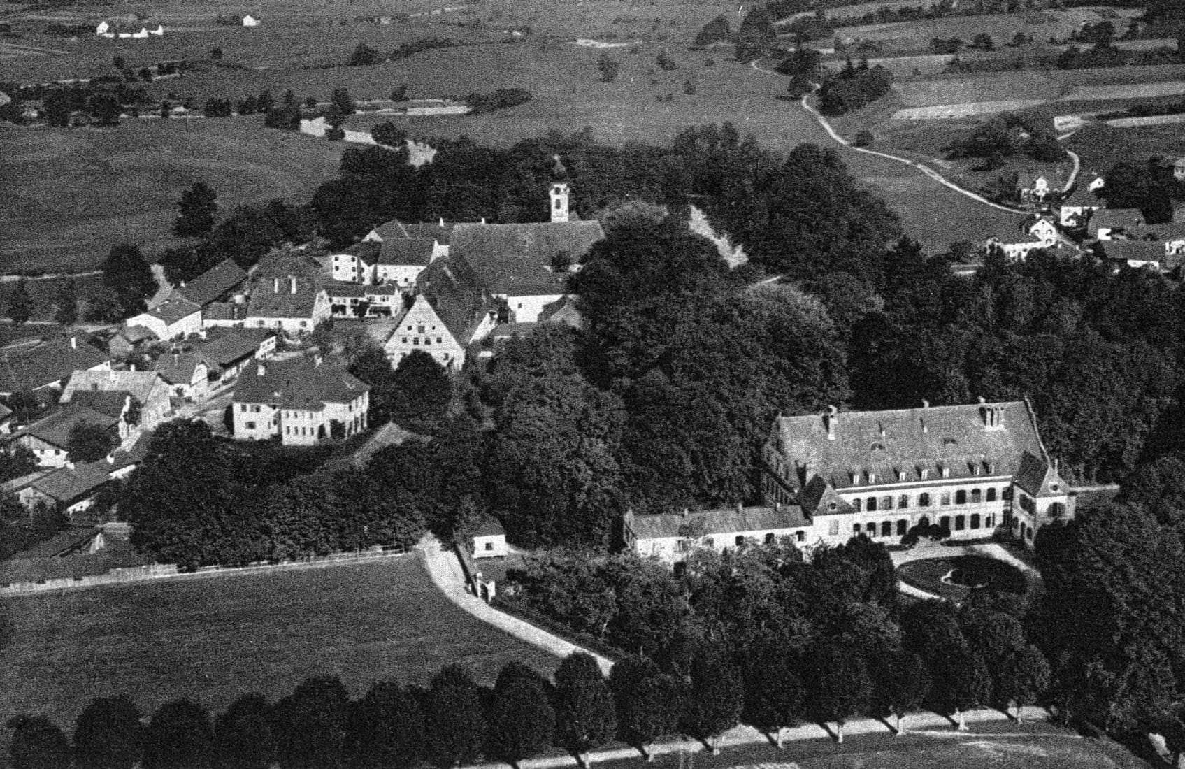 Historische Aufnahme von Gern; im Vordergrund das Neue Schloss.