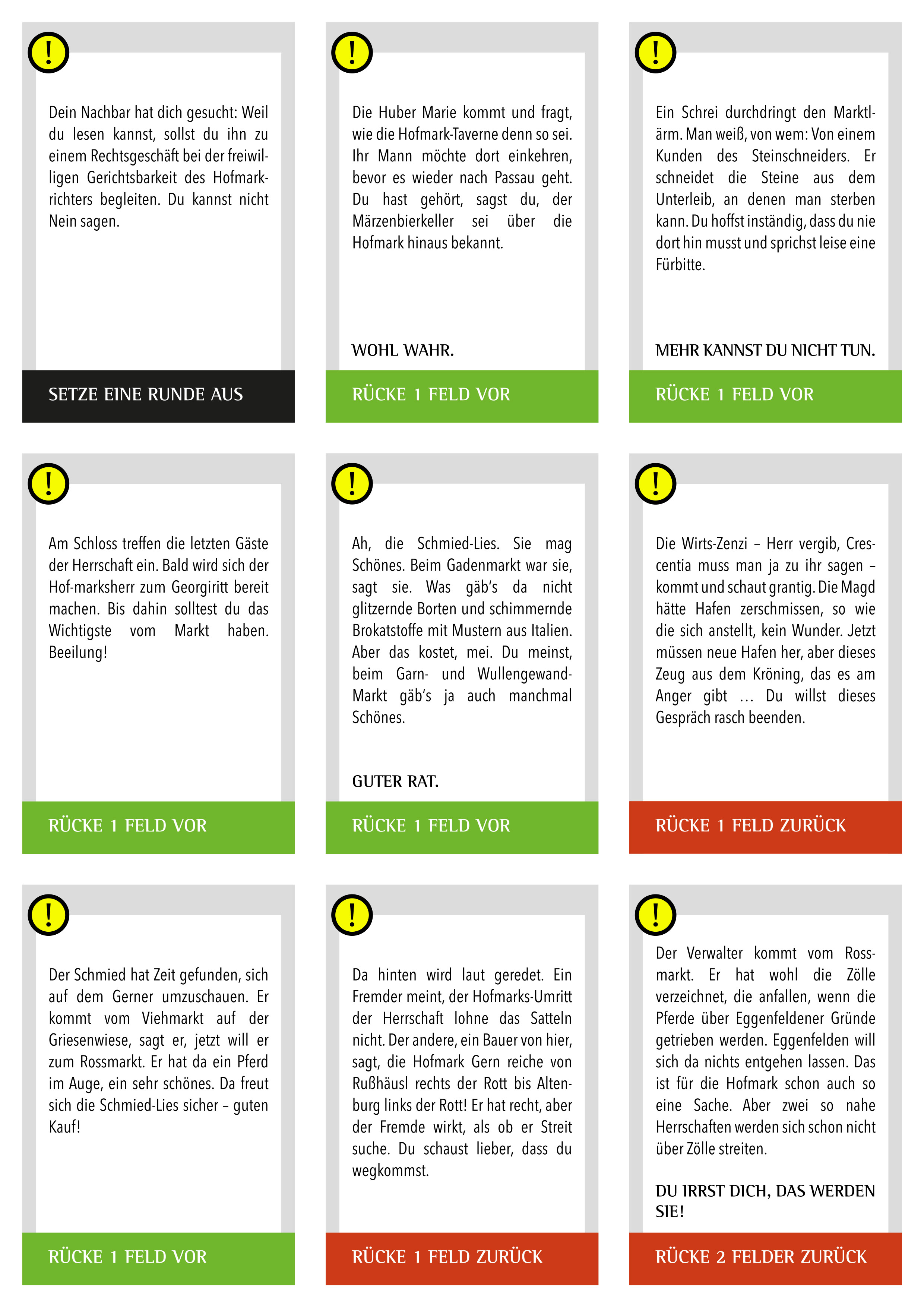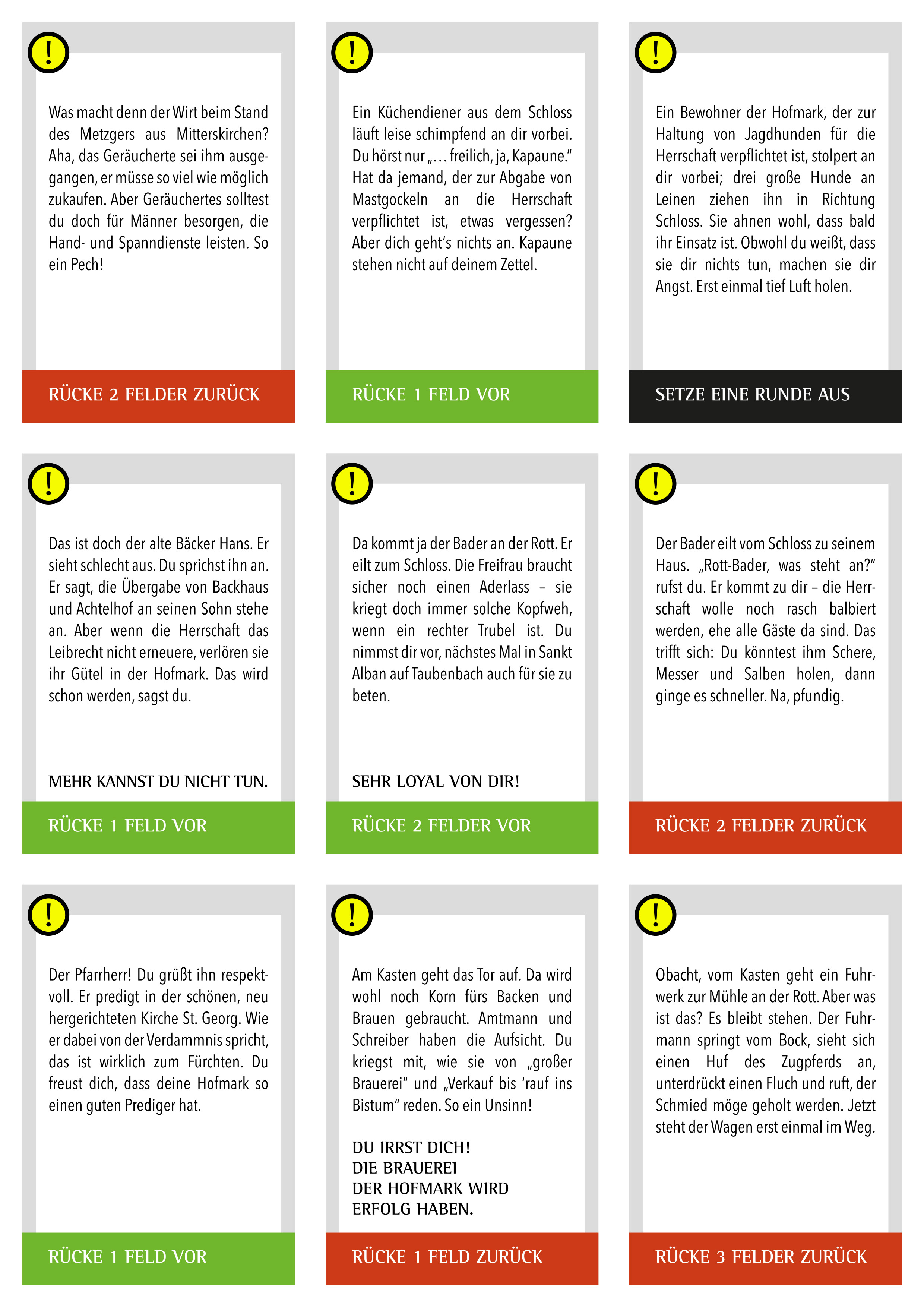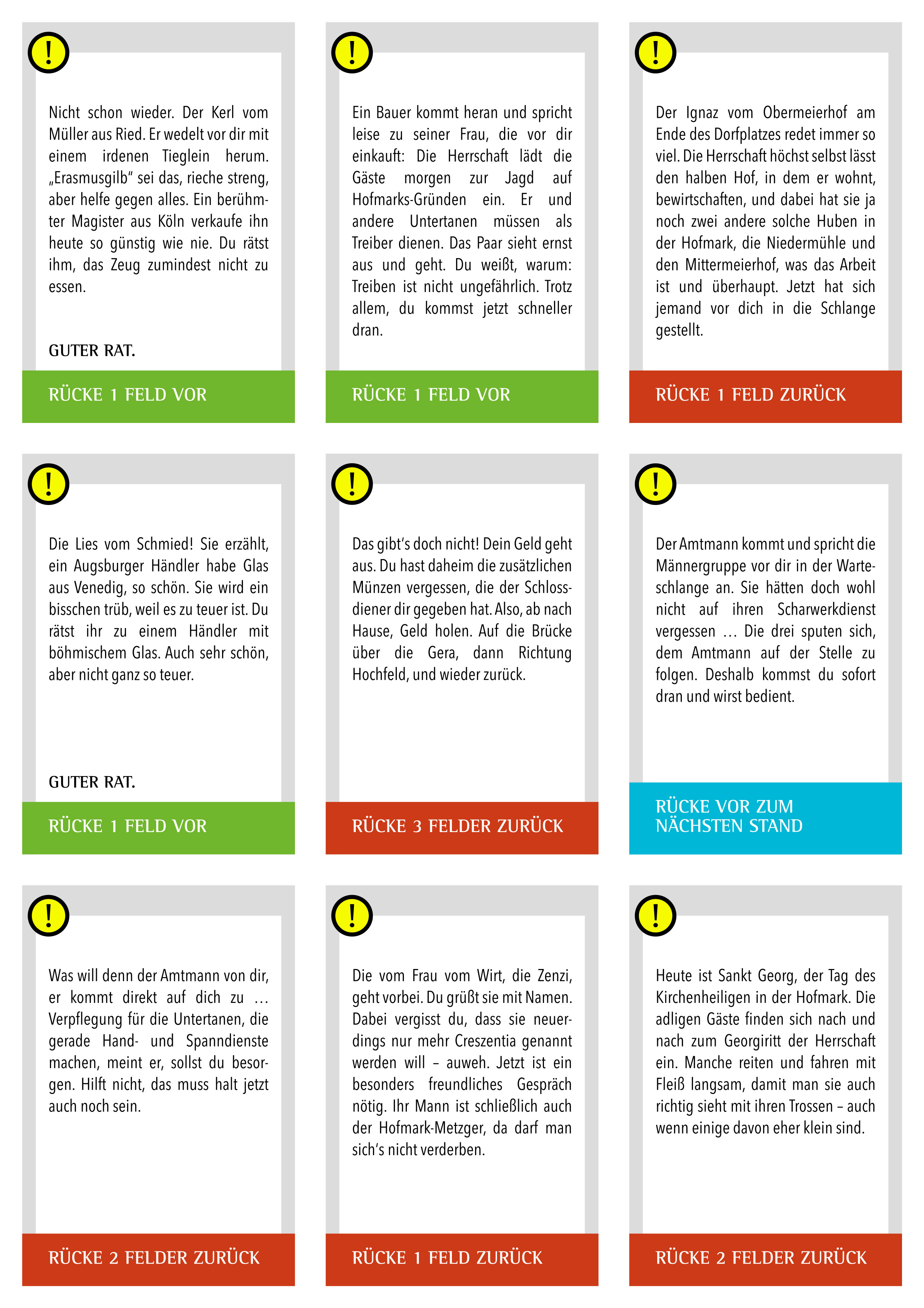 Die Ereigniskarten lenken den Verlauf für die Spielteams und haben farbliche Bedeutungen: