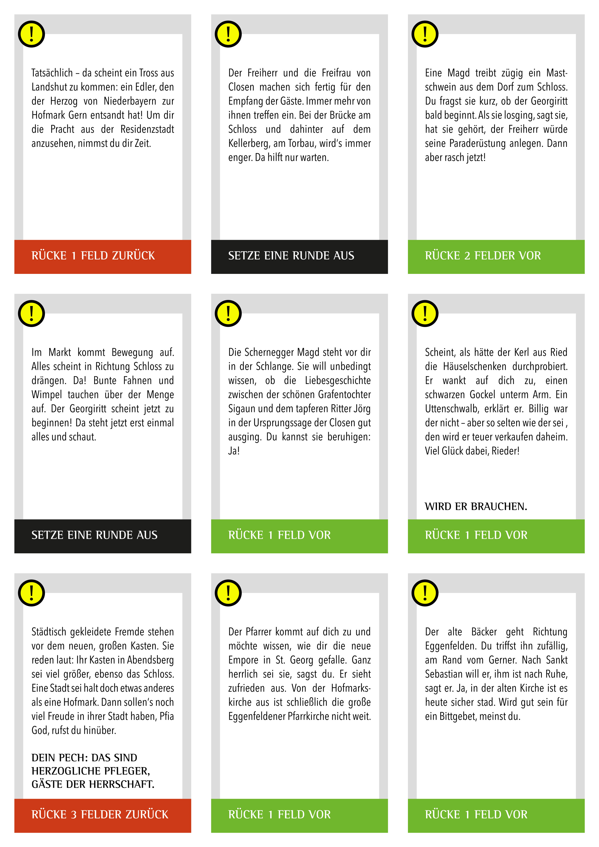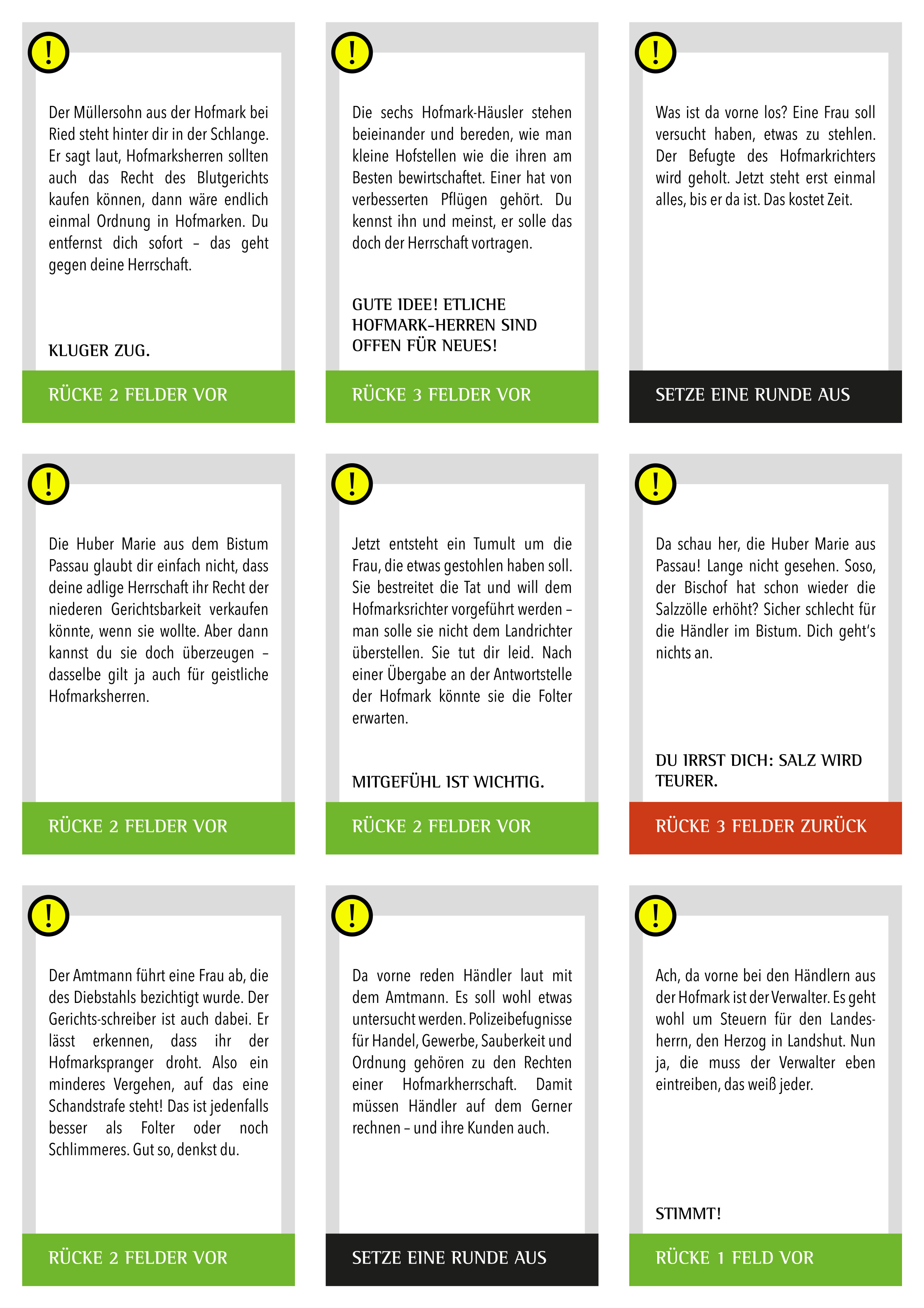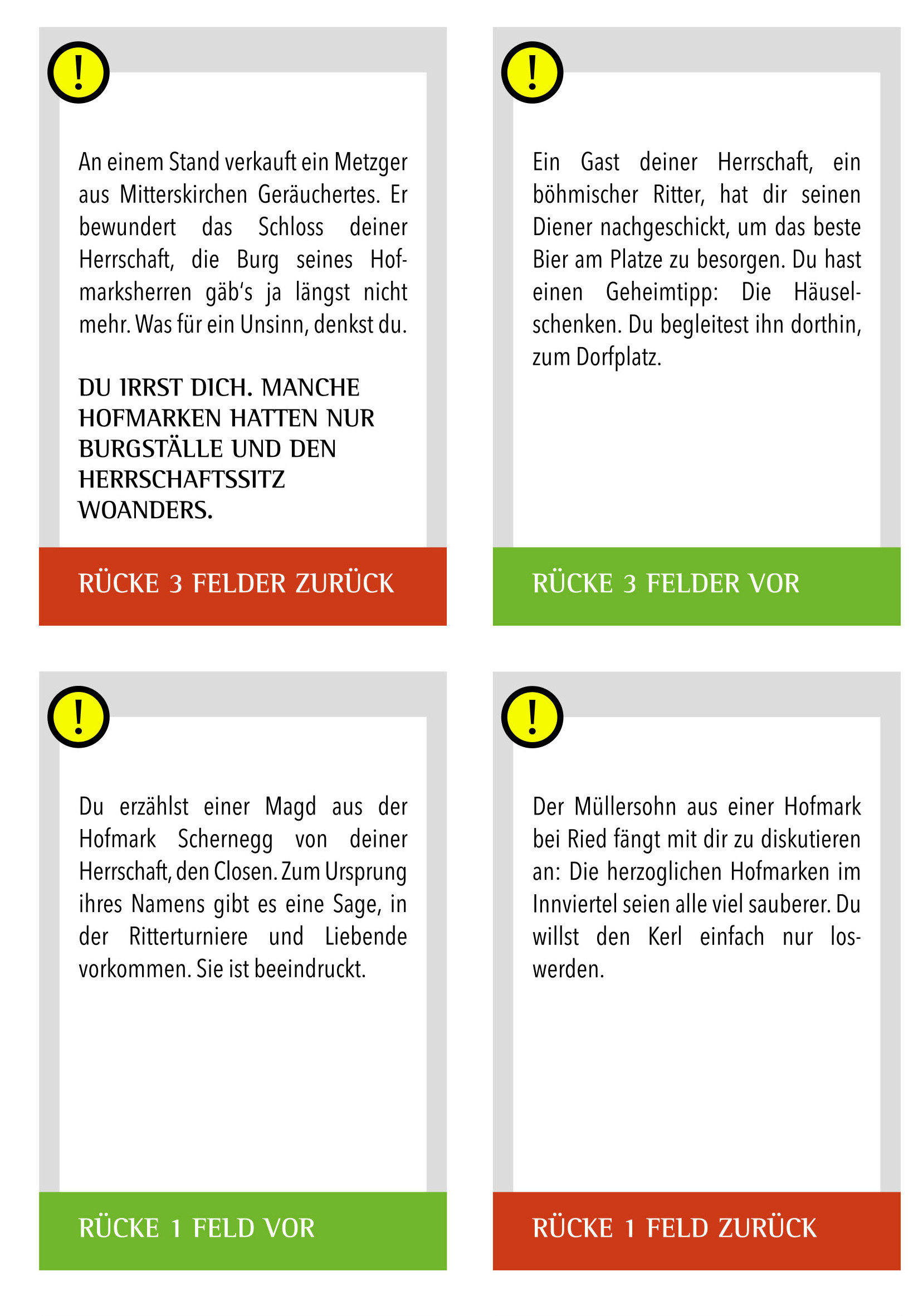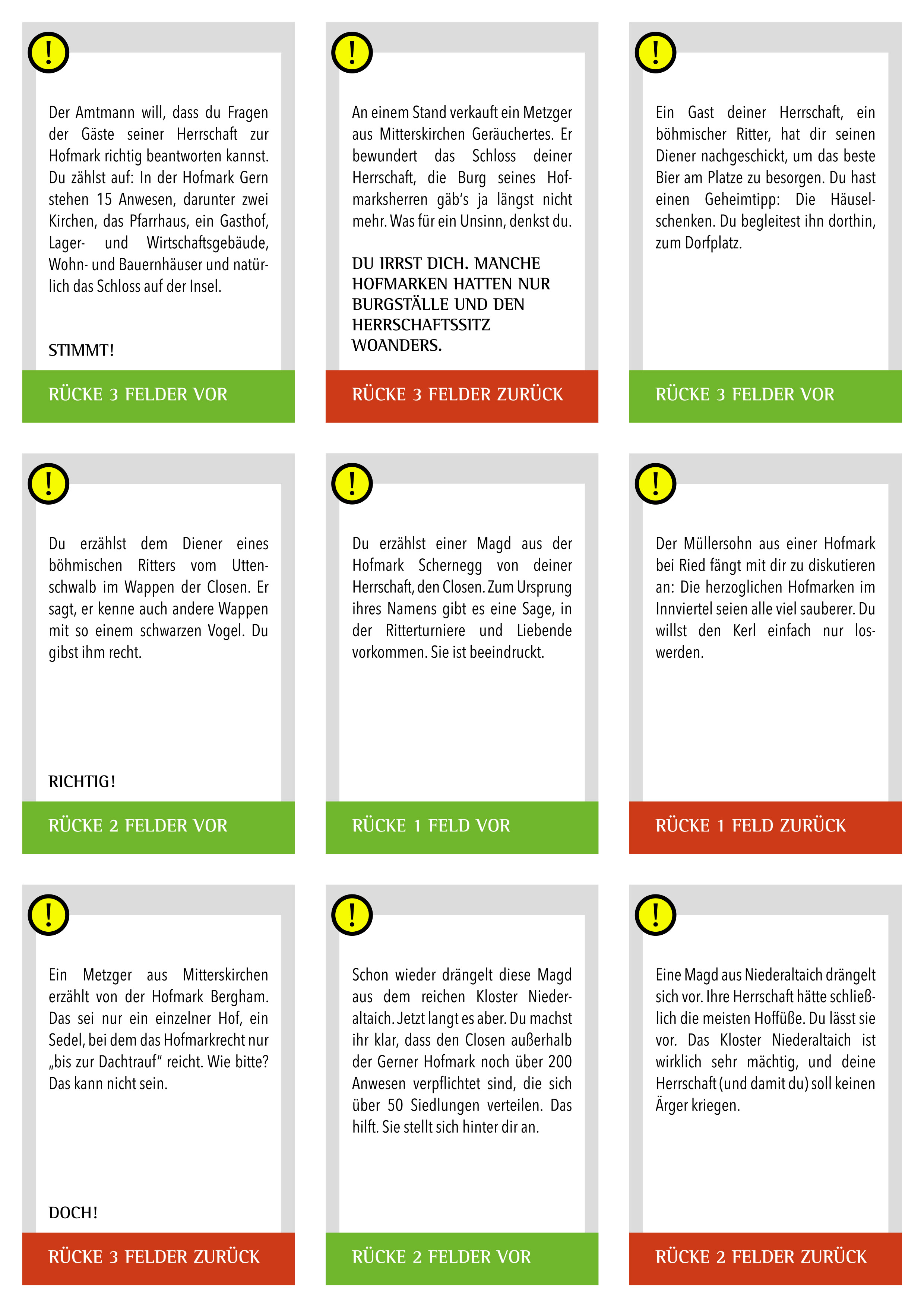 Die Ereigniskarten lenken den Verlauf für die Spielteams und haben farbliche Bedeutungen: