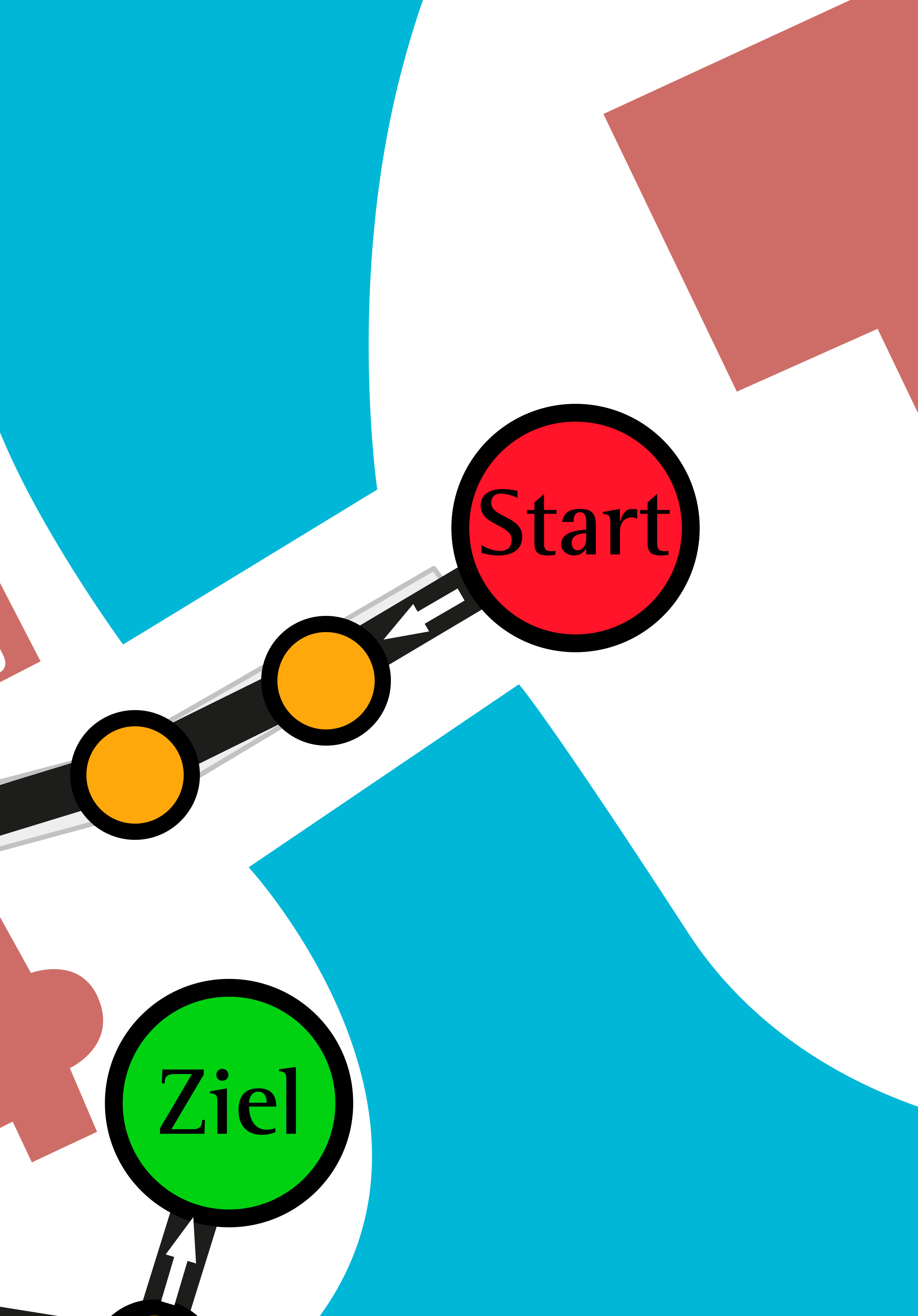 • Darauf ist grafisch eine Start-Ziel Spielroute aus Rundfeldern für die Spielfiguren angelegt.