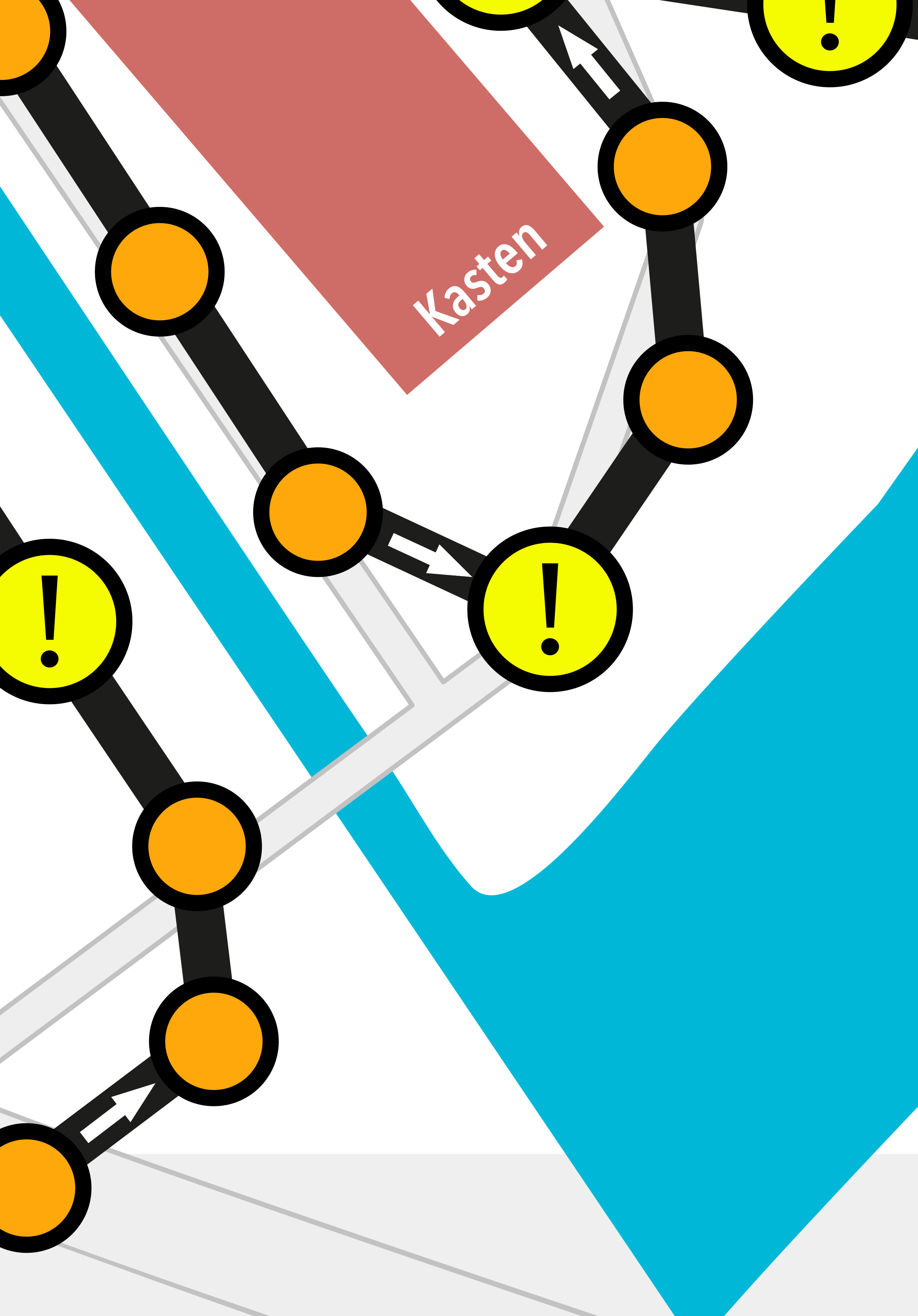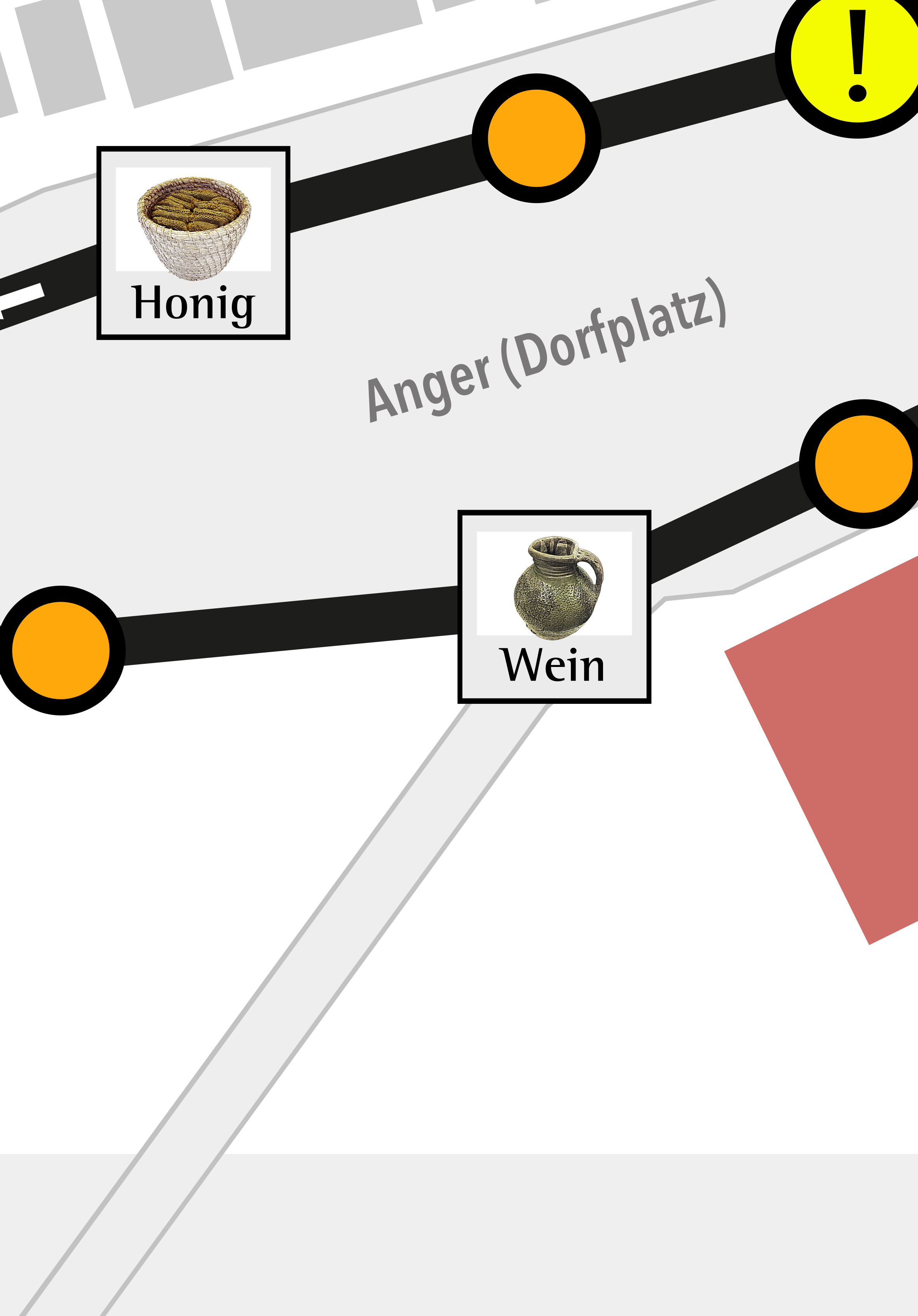 • Die Route ist ein „Markt-Rundgang“, die an grafisch gesetzten „Ständen“ vorbeiführt;