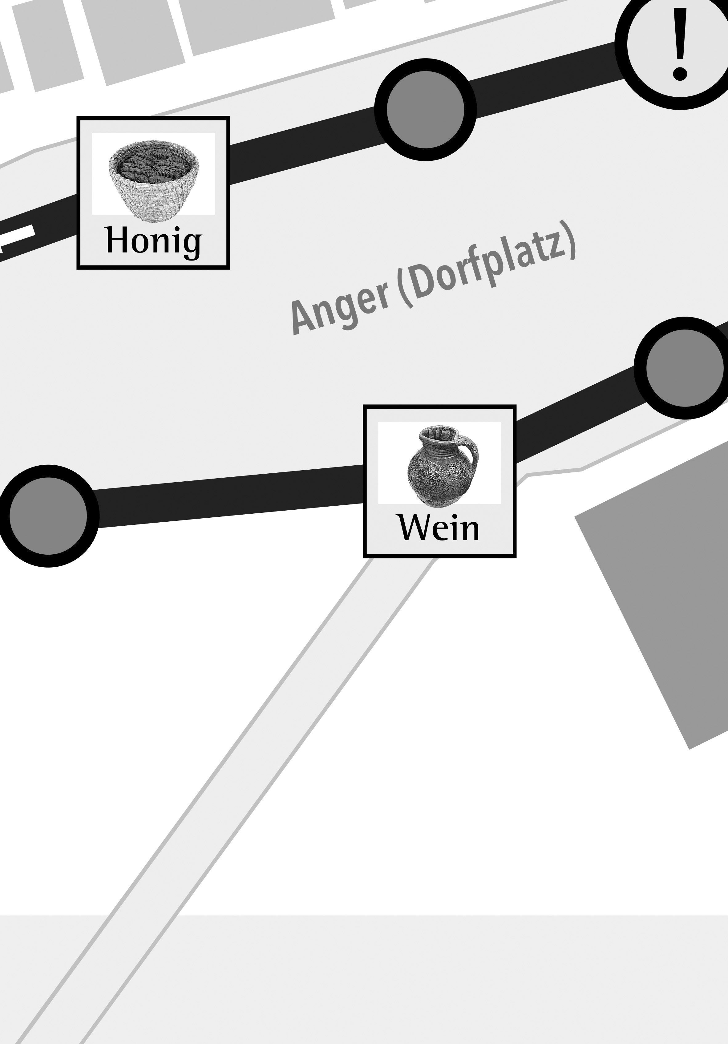 die „Stände“ sind jeweils markiert mit „Waren“ - jenen, die es dort zu kaufen/sammeln gibt.