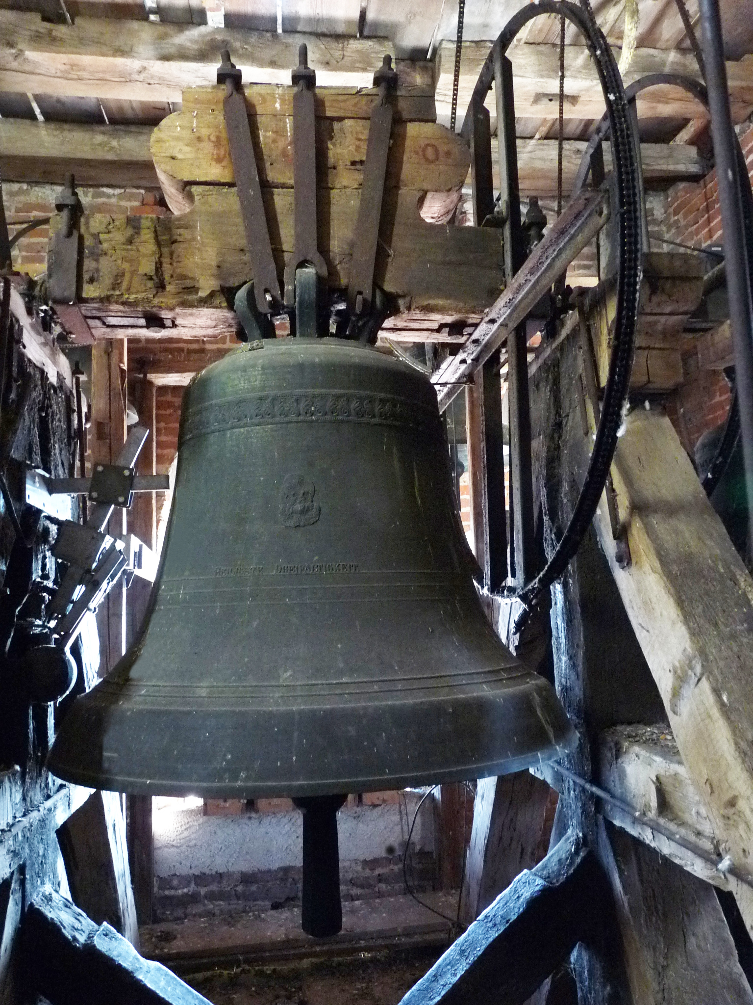 Mit der gleichen Übertragung über Zugdraht wird die größere Glocke im Geläut geschlagen.