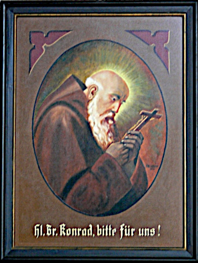 Eine der Glocken von 1950 zeigt dagegen ein gängiges modernes Motiv: den 1894 in Altötting gestorbenen Kapuziner-Laienbruders Konrad von Parzham. 1934 heiliggesprochen, erlangte Bruder Konrad große überregionale Popularität und ist heute in Teilen katholischer Kreise ein sehr beliebter Heiliger.